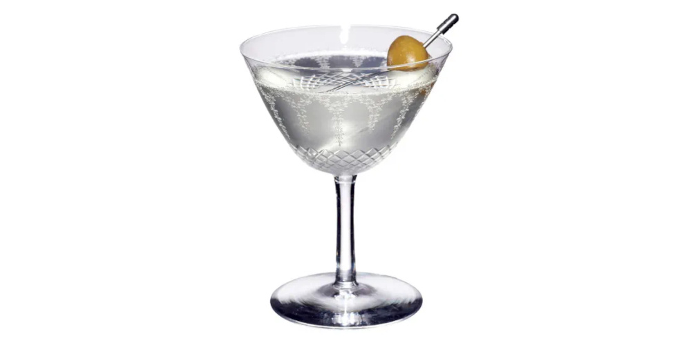 Вам понадобятся: Бокал для смешивания, Стрейнер, Бокал Мартини, Зубочистка