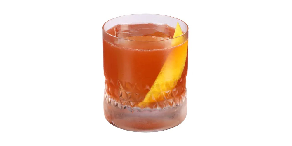 Перед подачей на поверхность коктейля отжать эфирные масла из ломтика кожуры лимона, и опустить ломтик в бокал.